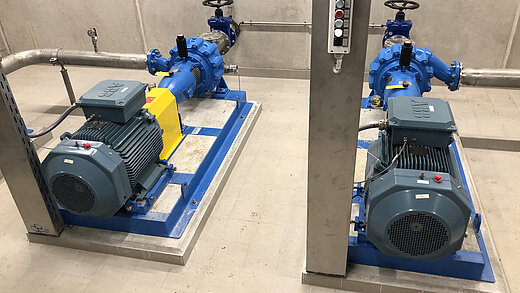 Zur Förderung des Abwassers wurde eine 2-stufige Pumpstation errichtet. Diese war auf eine Förderhöhe von 96 m und eine Abwassermenge von 21 l/s ausgelegt. Das Betriebsgebäude mit den Abmessungen 8,1 x 6,4 m nahm die trocken aufgestellten Pumpen im Untergeschoss auf. Aufgrund eines nicht tragfähigen Baugrunds wurde das Gebäude auf Brunnen gegründet. Zur Energieversorgung wurden Indach-Solarmodule vorgesehen.